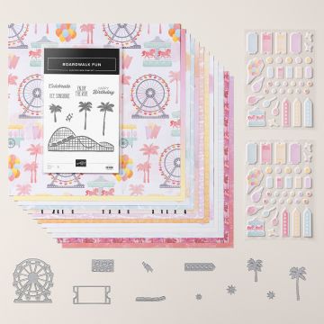 Je maakt de leukste zomerse projecten met het Beach Boardwalk-collectiepakket. Dit pakket bevat stempels en stansen met motieven om je eigen promenade te maken, plus designpapier en foamstickers in levendige zomerse kleuren die ideaal zijn voor kaarten en scrapprojecten. Bij deze bij elkaar passende ontwerpen zitten teksten om verjaardagen, mijlpalen en mooie zomerse herinneringen te vieren. Je maakt er telkens weer de vrolijkste papierkunst mee. Vul aan met inkt, kaartkarton en plakmiddelen om je projecten te voltooien.